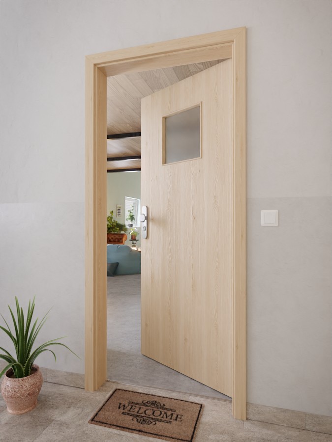 Górną część skrzydła drzwi zdobi kwadratowy wycięty fragment szyby. Dzięki delikatnym słojom dekor Authentic Achat tworzy przekonujący efekt drewniany. Wytrzymała powłoka CPL charakteryzuje się również łatwością pielęgnacji.