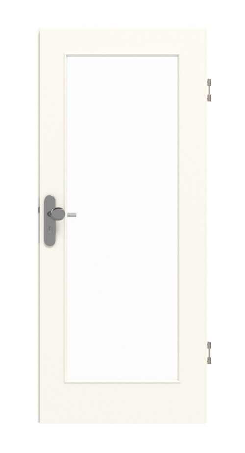 Skrzydło drzwiowe zdobi duże przeszklenie. Prostokąt jest otoczony listwami przyszybowymi. Dzięki jasnej powierzchni w kolorze bieli perłowej model ten pasuje do każdego stylu wnętrza. Dzięki powłoce CPL skrzydło drzwiowe jest odporne na oddziaływania mechaniczne i promieniowanie UV.