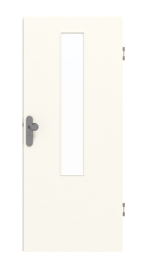 Wąskie, prostokątne przeszklenie w wykonaniu o niewielkich rozmiarach podkreśla środek skrzydła drzwiowego. Elegancki dekor Pearl White z łatwością dopasowuje się do każdego wnętrza. Odporność na zarysowania i uderzenia oraz łatwość pielęgnacji to cechy charakterystyczne wytrzymałej powłoki CPL.