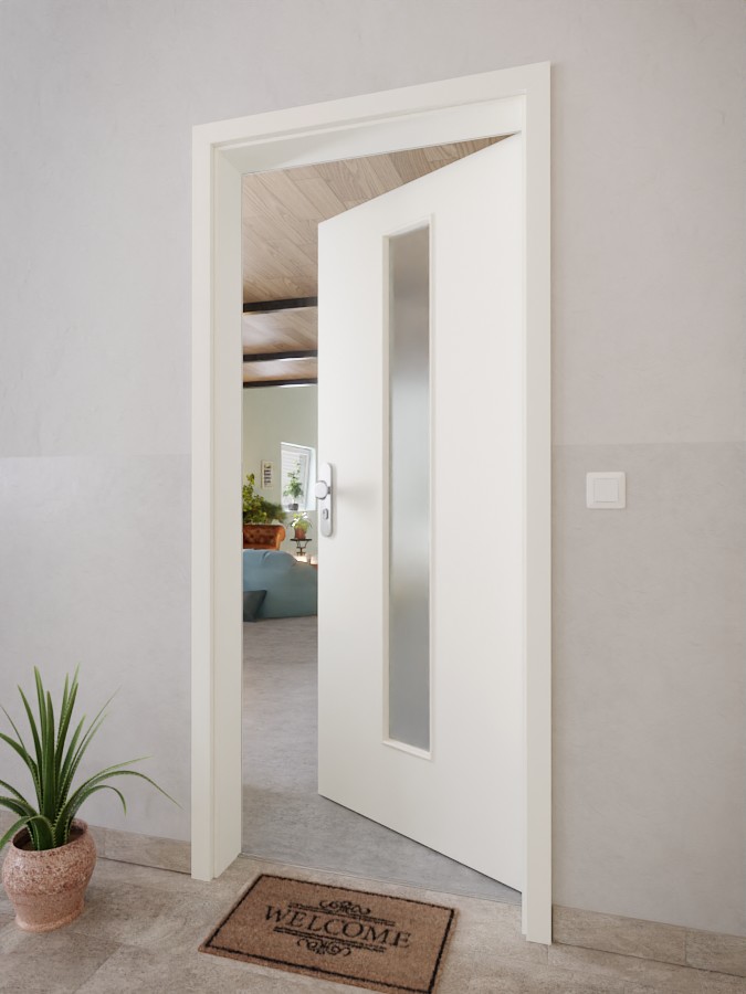 Długie, smukłe przeszklenie ozdabia dekoracyjnie środek skrzydła drzwiowego. Dzięki subtelnej, biało-szarej kolorystyce Rain drzwi subtelnie podkreślają indywidualny wystrój wnętrza. Ciepło, uderzenia i wilgoć nie mają wpływu na model pokryty płytą HPL.