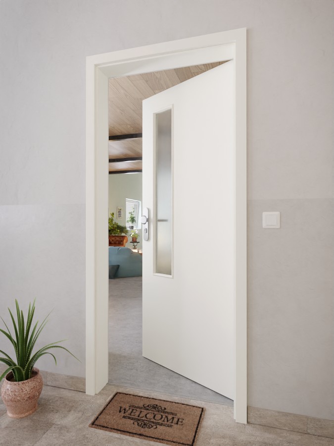 • Zakres dostawy: Skrzydło drzwiowe, zawiasy, zamek cylindryczny, szklenie, obniżona uszczelka podłogowa