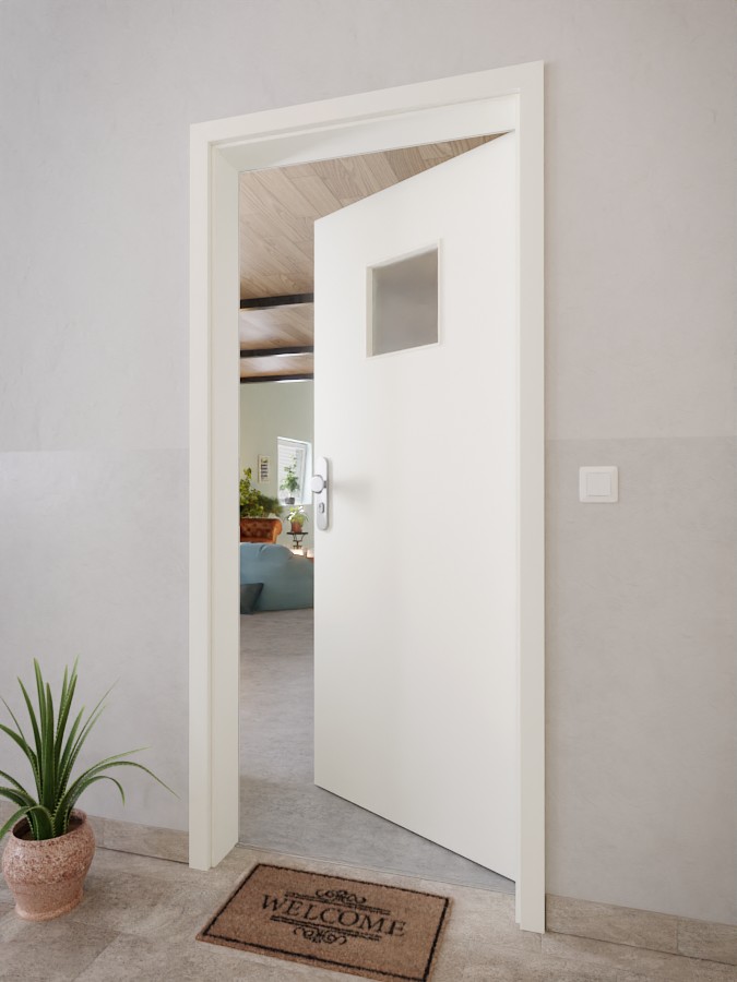 W centrum strukturyzowanej konstrukcji drzwi znajduje się niewielkie, kwadratowe wycięcie na szybę. Odcień Rain to nowoczesna i subtelna mieszanka kolorów szarych i białych. Doskonale pasuje do każdego wnętrza. Wytrzymała powłoka HPL spełnia wysokie standardy w zakresie wytrzymałości i trwałości.