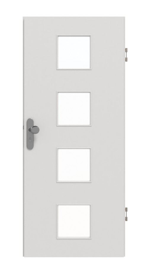 Cztery kwadratowe wycięcia na szybę w środkowej części drzwi nadają designowi nowoczesną strukturę. Delikatny szary odcień i subtelny dekor Silver Grey harmonijnie komponują się z Twoim wnętrzem. Piękny design powierzchni CPL jest chroniony przed zarysowaniami, uderzeniami i promieniowaniem UV.