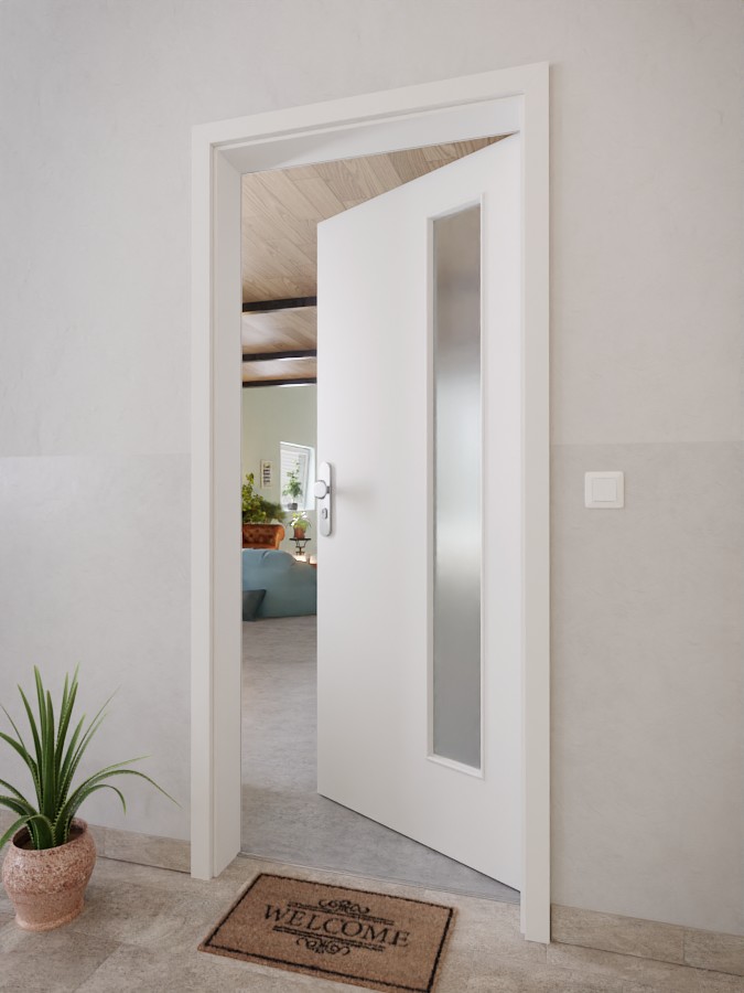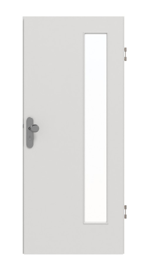 Design charakteryzuje się smukłym przeszkleniem po stronie zawiasów skrzydła drzwiowego. Jasnoszary dekor Silver Grey sprawia wrażenie prostego i nowoczesnego. Warstwa wierzchnia CPL charakteryzuje się odpornością na zarysowania, uderzenia i działanie światła.
