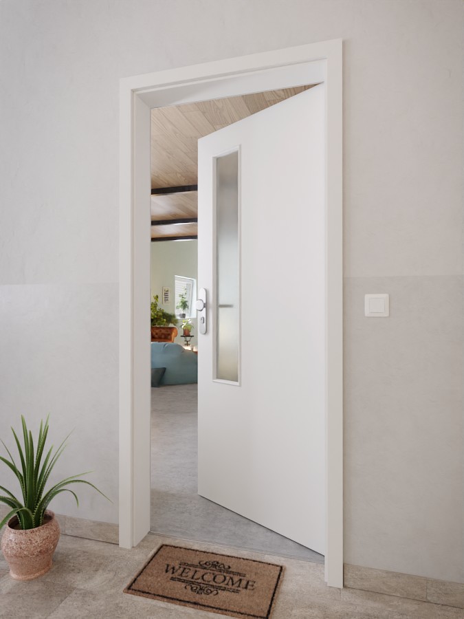 Po stronie zamka drzwi znajduje się wąskie przeszklenie. Delikatna, piaskowana struktura podkreśla elegancki wygląd odcienia Silver Grey. Zarysowania, uderzenia i promieniowanie UV nie mają wpływu na wytrzymałą powierzchnię CPL.