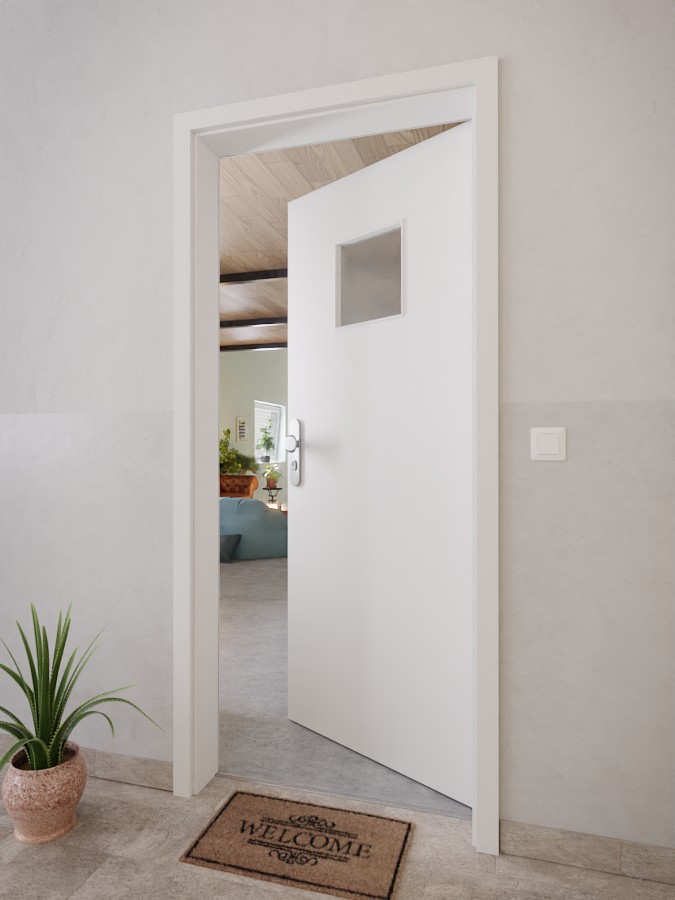 Standardowe wykonanie drzwi zawiera niezawodny zamek, wysokiej jakości zawiasy i praktyczną uszczelkę dolną.