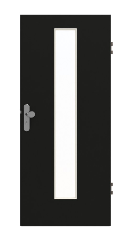 Dokładnie pośrodku skrzydła drzwiowego znajduje się wąskie przeszklenie z ramą z listew przyszybowych. Czarny dekor emanuje elegancją. Ciemny kolor wygląda elegancko i modnie. Powłoka HPL zapewnia długotrwałą trwałość dzięki odporności na zarysowania, uderzenia, wysoką temperaturę i wilgoć.