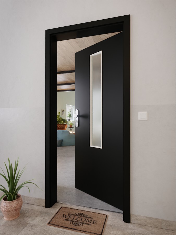 Przez środek skrzydła drzwiowego przebiega krótkie, wąskie wycięcie na szybę. Umożliwia łagodne wpuszczanie światła dziennego nawet do ciemnych pomieszczeń. Elegancki czarny dekor doskonale komponuje się z nowoczesnym wystrojem wnętrz. Wytrzymała powłoka HPL spełnia wysokie standardy w zakresie wytrzymałości i trwałości.