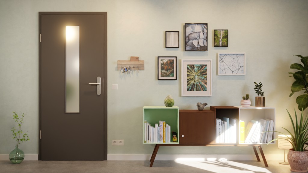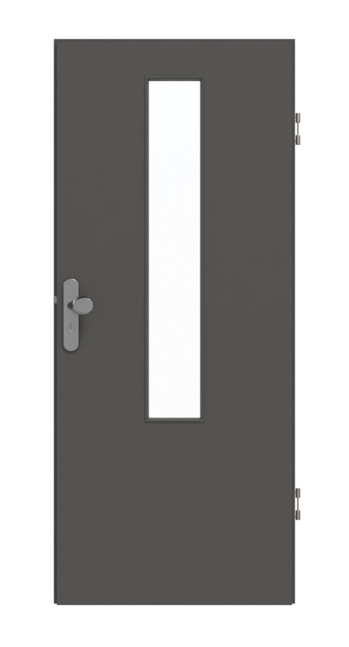 Dokładnie pośrodku skrzydła drzwiowego znajduje się wąskie, prostokątne przeszklenie, które rozciąga się na około dwie trzecie długości. Nowoczesny dekor w odcieniu szarości Ebony sprawia przyjemne wrażenie spokoju i równowagi. Powierzchnie CPL zachowują swój piękny design nawet po długim użytkowaniu i pod wpływem promieniowania UV.