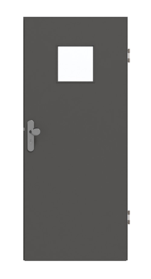 Kwadratowe wycięcie na szybę w górnej części skrzydła drzwiowego zapewnia dyskretny dopływ światła. Bogaty odcień szarości Ebony sprawia przyjemne wrażenie równowagi i tworzy spokojną atmosferę. Model jest odporny na zarysowania, uderzenia i promieniowanie UV dzięki wytrzymałej i łatwej w pielęgnacji powierzchni CPL.