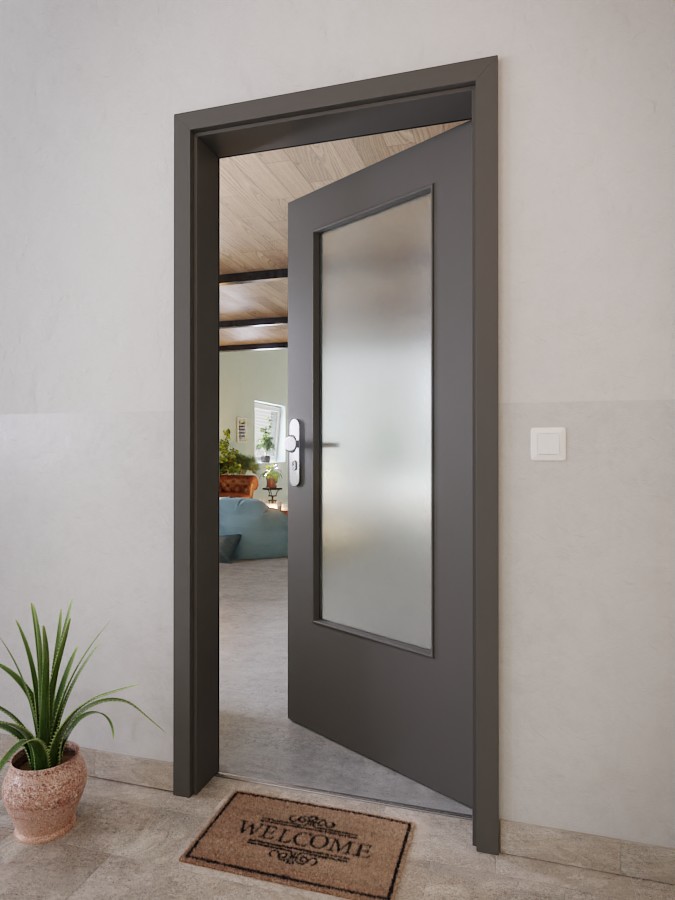 Duże przeszklenie celowo wpuszcza światło z jednego pomieszczenia do drugiego. Nałożone listwy przyszybowe stylowo go otaczają. Nowoczesny dekor w odcieniu szarości Ebony sprawia przyjemne wrażenie spokoju i równowagi. Dzięki warstwie wierzchniej z CPL nie musisz martwić się o zarysowania, uderzenia i promieniowanie UV.