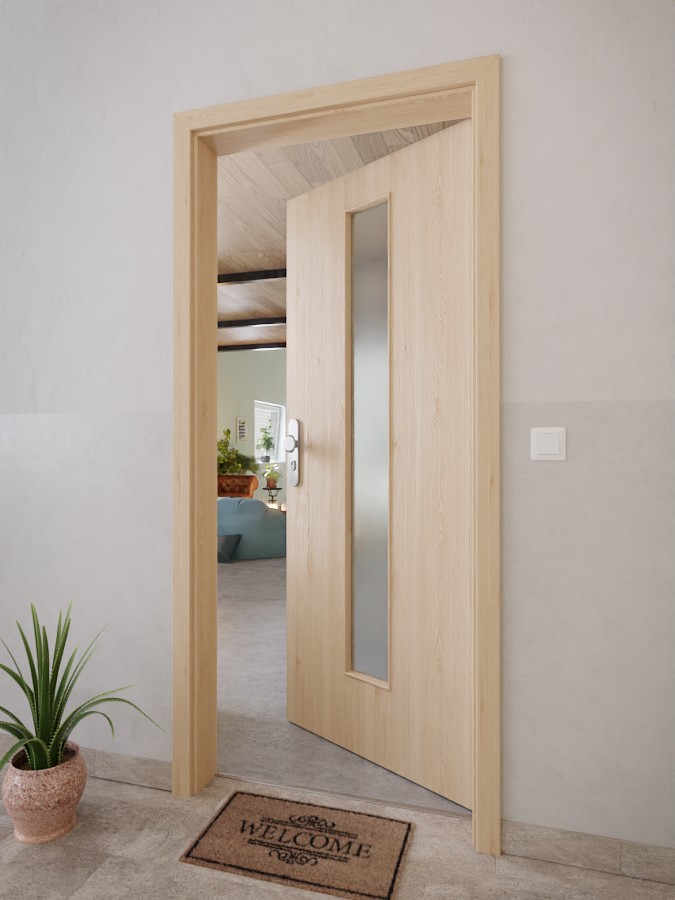 Na środku skrzydła drzwiowego znajduje się wpuszczone przeszklenie, które przyciąga wzrok. Spokojne słoje i jasne odcienie drewna nadają dekorowi Authentic Achat wygląd niemal nie do odróżnienia od prawdziwego. Dzięki warstwie wierzchniej z CPL nie musisz martwić się o zarysowania, uderzenia i promieniowanie UV.