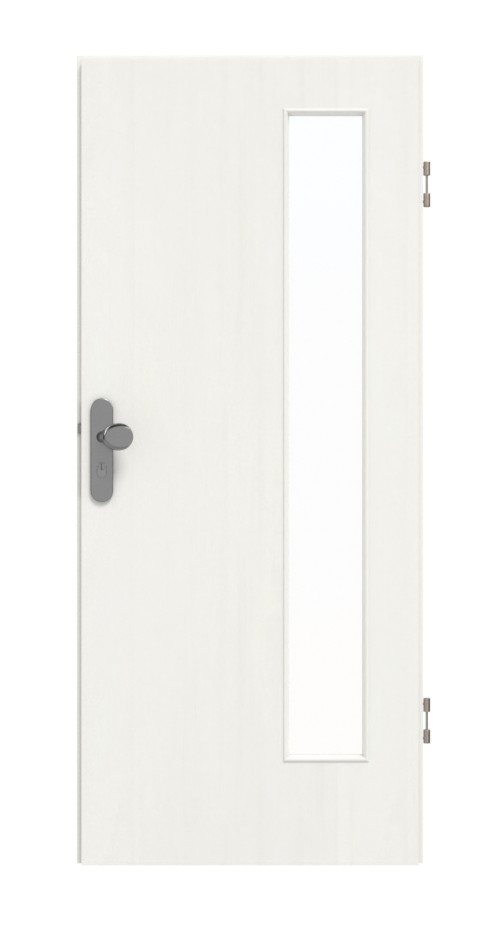 Design charakteryzuje się smukłym przeszkleniem po stronie zawiasów skrzydła drzwiowego. Wzór Authentic Bianco lśni w przyjemnej bieli. Odporna na zarysowania i uderzenia powierzchnia HPL pozwala w mgnieniu oka usunąć codzienne zabrudzenia.