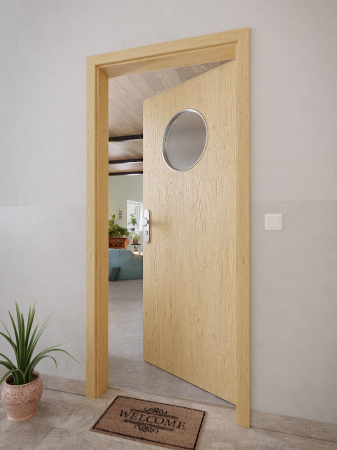 Nowoczesny bulaj w górnej części drzwi zapewnia dyskretny dopływ światła. Dekor Authentic Asteiche sprawia wrażenie naturalnego i przytulnego. Dzięki dynamicznym słojom tworzy niezwykle realistyczny efekt drewna. Powierzchnie CPL zachowują swój piękny design nawet po długim użytkowaniu i pod wpływem promieniowania UV.
