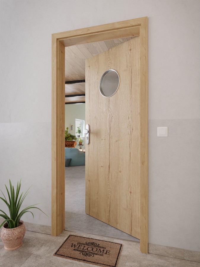 • Zakres dostawy: Skrzydło drzwiowe, zawiasy, zamek cylindryczny, szklenie, obniżona uszczelka podłogowa