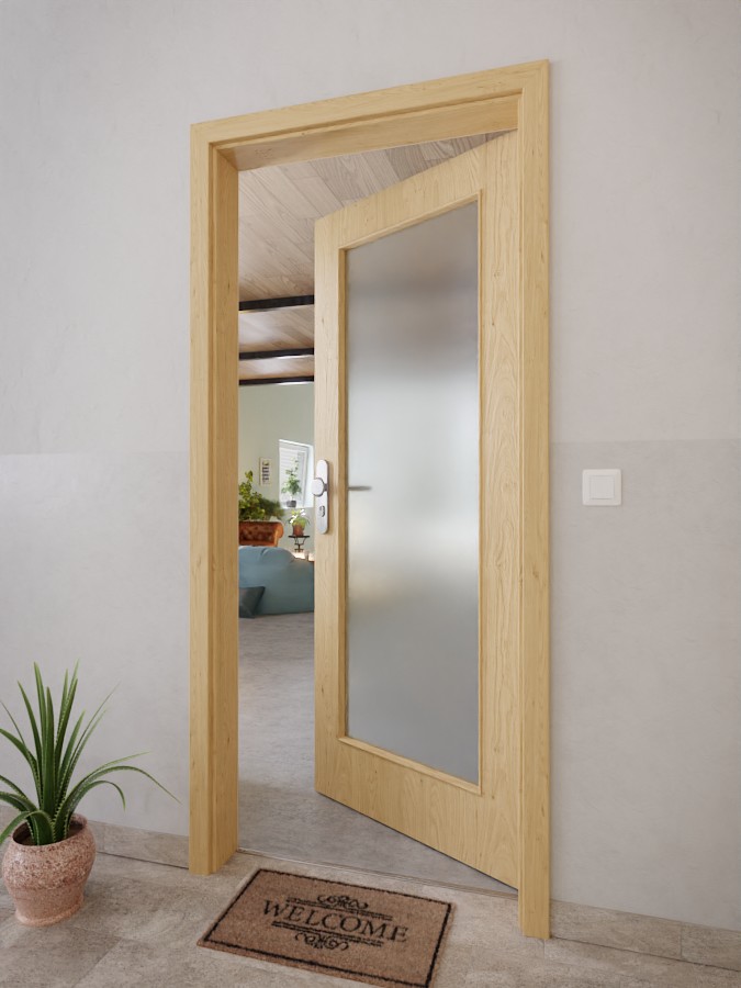 Duże wycięcie na szybę w kształcie prostokąta zdobi skrzydło drzwiowe i zapewnia dodatkowe światło w pomieszczeniu. Atrakcyjny wzór drewniany Authentic Asteiche charakteryzuje się naturalnym usłojeniem oraz delikatnymi wtrąceniami sęków. Odporność na zarysowania i uderzenia oraz łatwość pielęgnacji to cechy charakterystyczne wytrzymałej powłoki CPL.