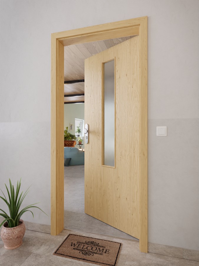 Pośrodku znajduje się wąski, prostokątny otwór okienny, który zajmuje mniej więcej dwie górne trzecie części skrzydła drzwi. Dzięki swoim dynamicznym słojom dekor Authentic Asteiche tworzy niezwykle realistyczny wzór drewna. Dzięki powłoce z CPL skrzydło drzwiowe jest odporne na czynniki mechaniczne i promieniowanie UV.