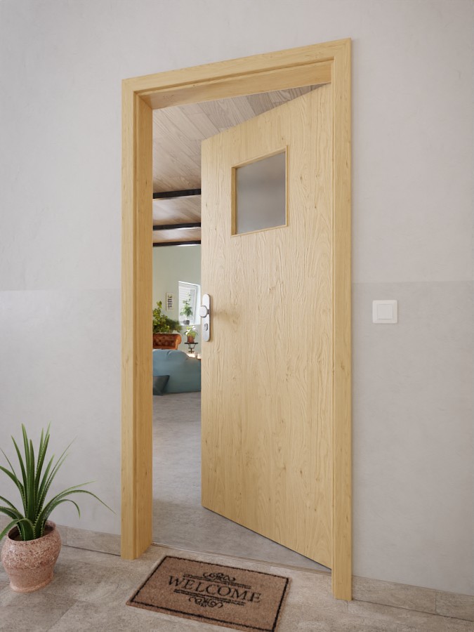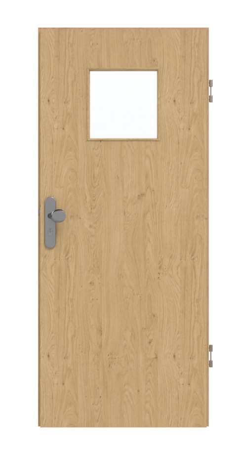 Na skrzydle drzwiowym na wysokości oczu umieszczono kwadratowe wycięcie na szybę. Dekor drewniany Authentic Asteiche charakteryzuje się harmonijnym usłojeniem oraz sporadycznie widocznymi śladami sęków. Zarysowania, uderzenia i promieniowanie UV nie mają wpływu na wytrzymałą powierzchnię CPL.