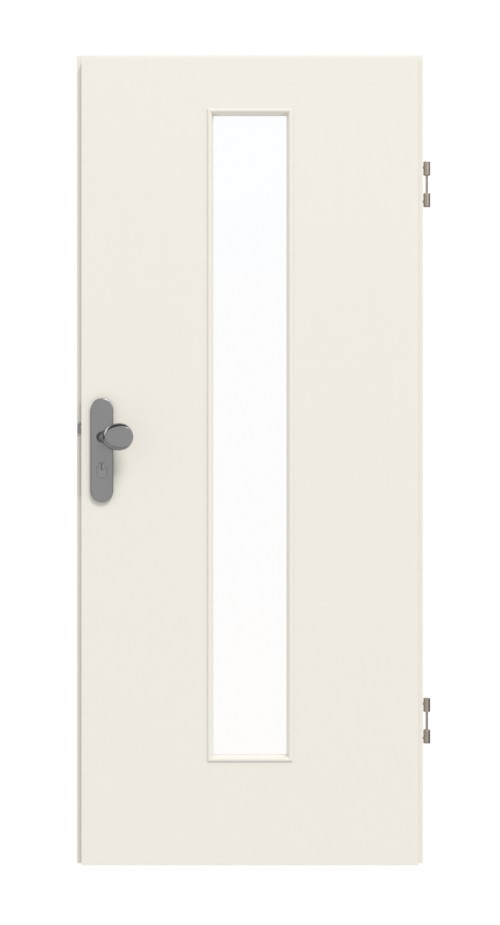 Dokładnie pośrodku skrzydła drzwi znajduje się otwór o szerokości nieco poniżej 20 cm, otoczony listwami szklanymi. Dzięki wykończeniu w kolorze białym lakierowanym 9010 drzwi te pasują do każdego wnętrza. Dzięki wytrzymałej i łatwej w pielęgnacji powierzchni CPL model ten jest odporny na zarysowania, uderzenia i promieniowanie UV.