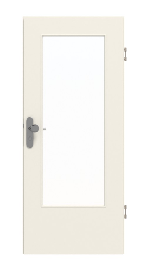 Dzięki dużemu, prostokątnemu wycięciu w szybie do pomieszczenia może wpadać dodatkowe światło. Dzięki neutralnej kolorystyce dekor w białym lakierze 9010 doskonale komponuje się z każdym wystrojem wnętrza. Powierzchnia z laminatu wysokociśnieniowego nie tylko wygląda atrakcyjnie, ale jest również niezwykle odporna na niepożądane zarysowania i uderzenia.