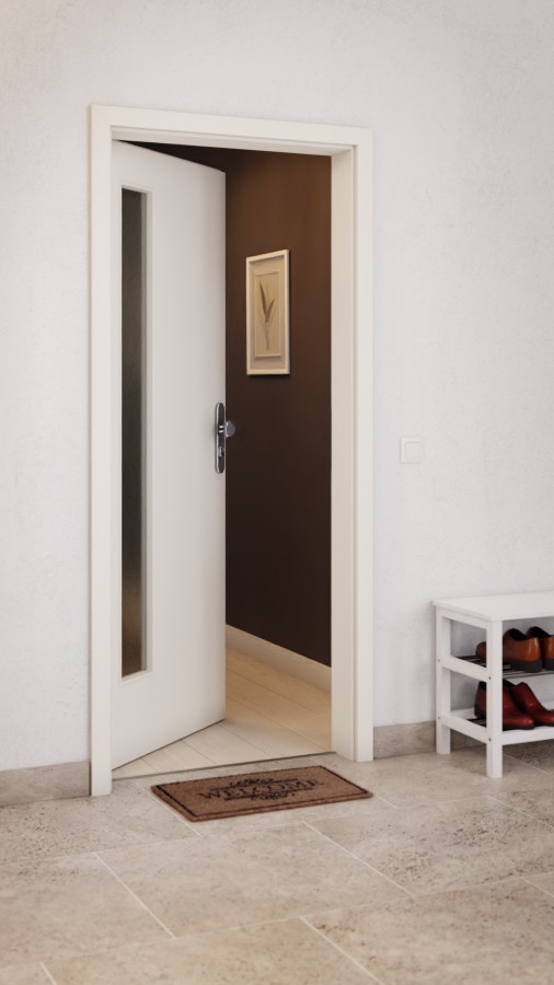• Zakres dostawy: Skrzydło drzwiowe, zawiasy, zamek cylindryczny, szklenie, obniżona uszczelka podłogowa