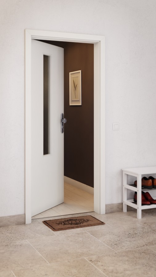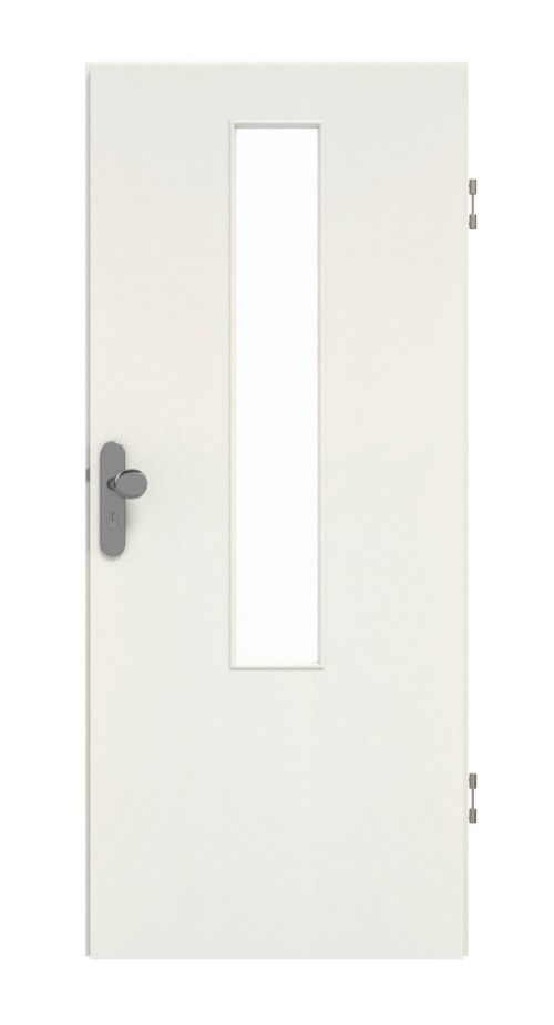 Wąskie, prostokątne przeszklenie w wykonaniu o niewielkich rozmiarach podkreśla środek skrzydła drzwiowego. Harmonijny wygląd drzwi zapewnia dekor w kolorze białym z fakturą. Dzięki warstwie wierzchniej z CPL nie musisz martwić się o zarysowania, uderzenia i promieniowanie UV.