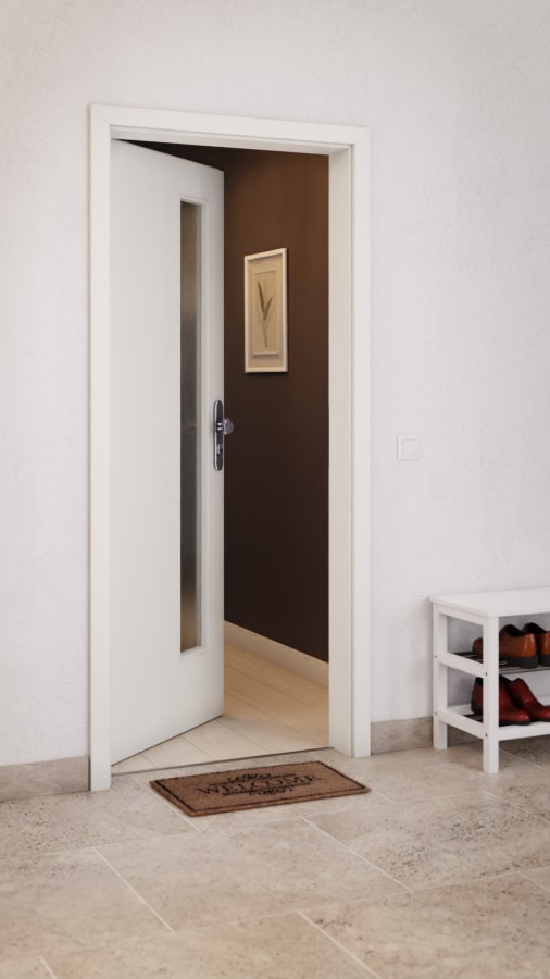 Płyta wiórowa pełna stanowiąca rdzeń skrzydła drzwiowego przekonuje swoją wytrzymałością. Skrzydło drzwiowe posiada certyfikat klasy klimatycznej 3. W ten sposób stawiasz na model, który zachowuje swój kształt nawet przy wahaniach temperatury do 10 stopni.