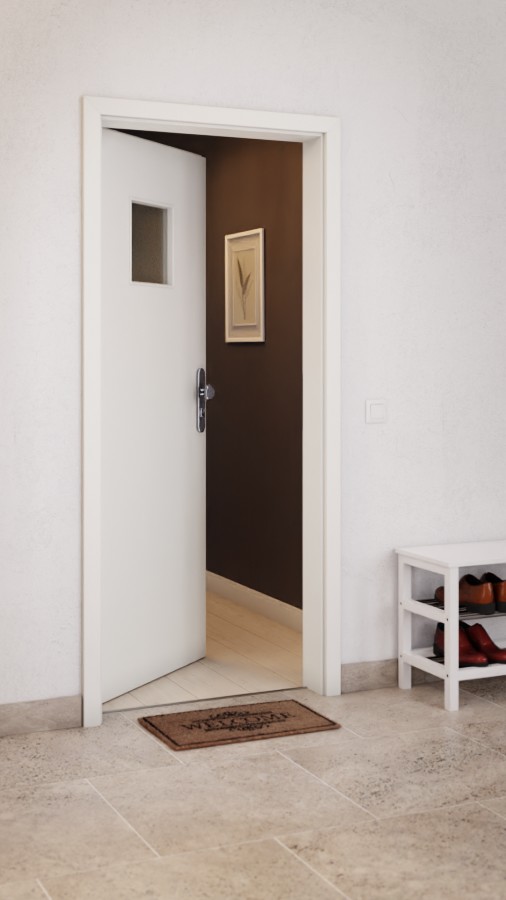Na wysokości oczu w skrzydle drzwiowym znajduje się mały, kwadratowy otwór . Dekor Biały strukturalny harmonijnie wkomponuje się w Twoje wnętrze. Oprócz wysokiej odporności na ścieranie warstwa wierzchnia z HPL wyróżnia się również odpornością na wysoką temperaturę i światło .
