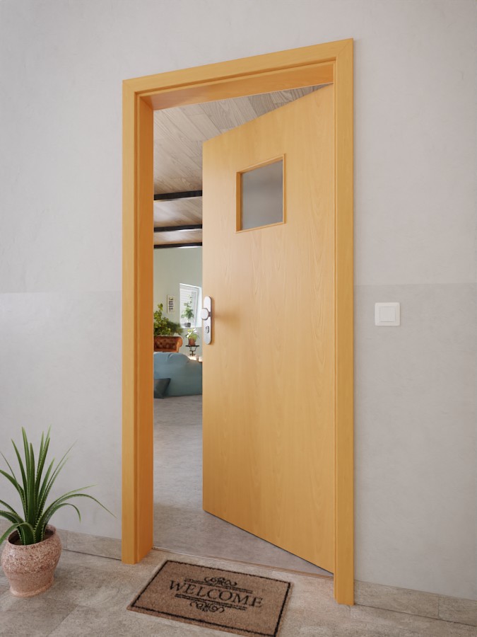 W górnej części skrzydła drzwi znajduje się kwadratowe okno. Ciepłe odcienie drewna i delikatne usłojenie harmonizują w dekorze Buk Exclusive. Oprócz łatwości w pielęgnacji, powłoka CPL wyróżnia się odpornością na zarysowania, uderzenia i promieniowanie UV.