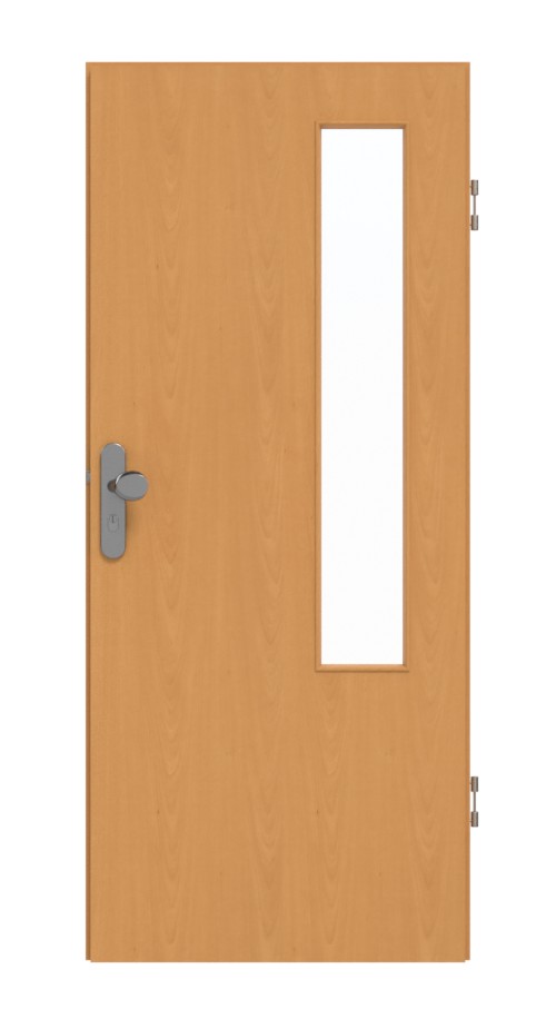 W górnej części skrzydło drzwiowe zdobi krótkie, smukłe wycięcie na szybę po stronie zawiasów. Na dekorze bukowym piękne słoje drewna układają się równomiernie i tworzą kwiatowy wzór. Powierzchnia paneli laminowanych wysokociśnieniowych nie tylko posiada atrakcyjne wykończenie wizualne, ale jest również wyjątkowo odporna na niepożądane zarysowania lub uderzenia.