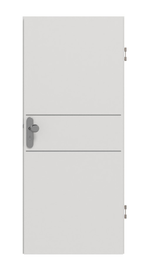 Dwie poprzeczne listwy umiejętnie podkreślają klamkę. Jasnoszary dekor Silver Grey sprawia wrażenie prostego i nowoczesnego. Oprócz atrakcyjnego wyglądu łatwa w pielęgnacji warstwa wierzchnia z CPL charakteryzuje się wysoką odpornością na uderzenia, zarysowania i ścieranie.