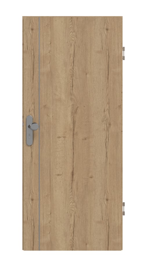 Eleganckim elementem przyciągającym wzrok jest długa liza, która biegnie wzdłuż skrzydła drzwi od strony zamka. Naturalne słoje drewna zdobią rustykalny dekor Authentic dąb szczelinowy DA i zapewniają wyraziste wykończenie wizualne. Atrakcyjny wygląd praktycznej powierzchni CPL idzie w parze z wysoką odpornością na zarysowania i ścieranie oraz łatwością czyszczenia.