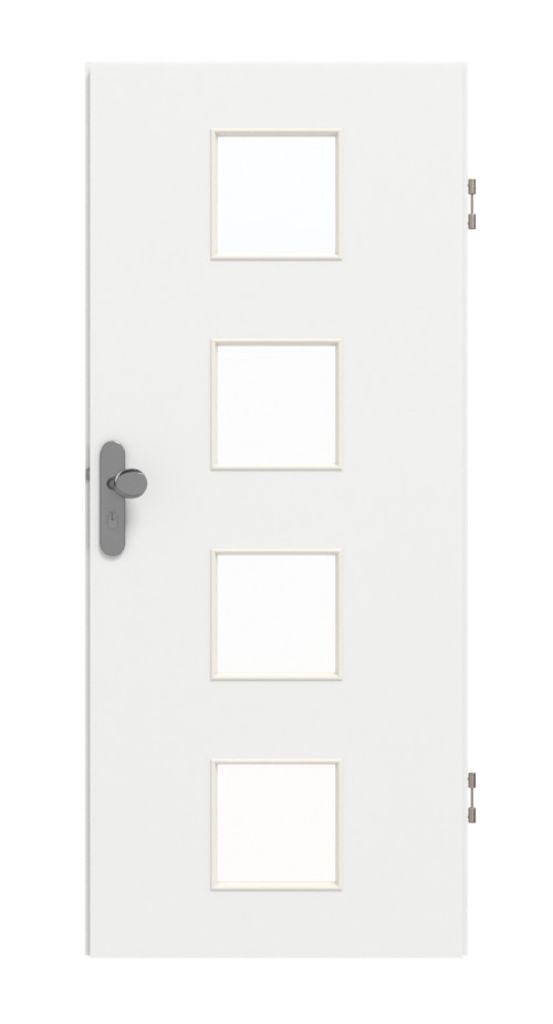Cztery kwadratowe przeszklenia ułożone jeden nad drugim tworzą przyjemną, prostą i nowoczesną kompozycję. Dekor Designer White prezentuje się neutralnie i ponadczasowo. Ma delikatnie ziarnistą strukturę. Odporność na uderzenia, zarysowania, wysoką temperaturę i wilgoć oraz łatwość pielęgnacji – powłoka HPL zachwyca wieloma zaletami.