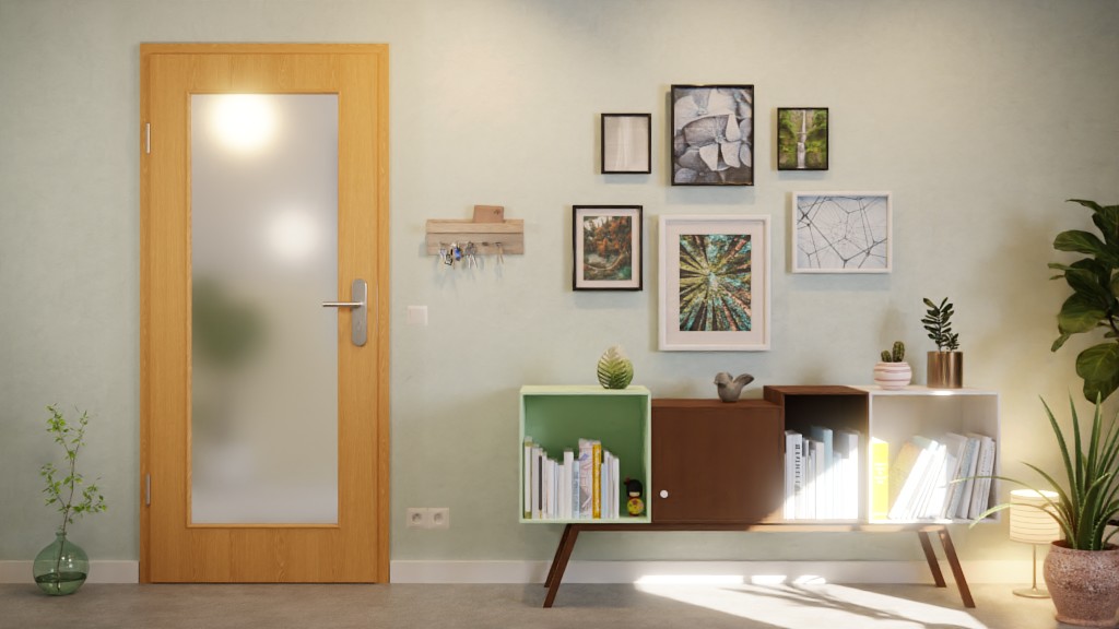 Dzięki dużemu otworowi okiennemu do pomieszczeń wpada dużo światła. Listwy szklane po bokach otaczają prostokąt. Charakterystyczne usłojenie nadaje dekorowi drewnianemu „Dąb Premium” ponadczasowy wygląd. Wytrzymała warstwa wierzchnia z HPL wyróżnia się odpornością na zarysowania, uderzenia, wysoką temperaturę i wilgoć.