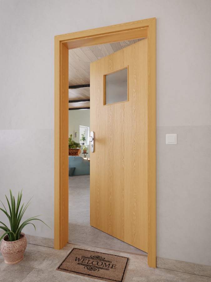 • Zakres dostawy: Skrzydło drzwiowe, zawiasy, zamek cylindryczny, szklenie, obniżona uszczelka podłogowa