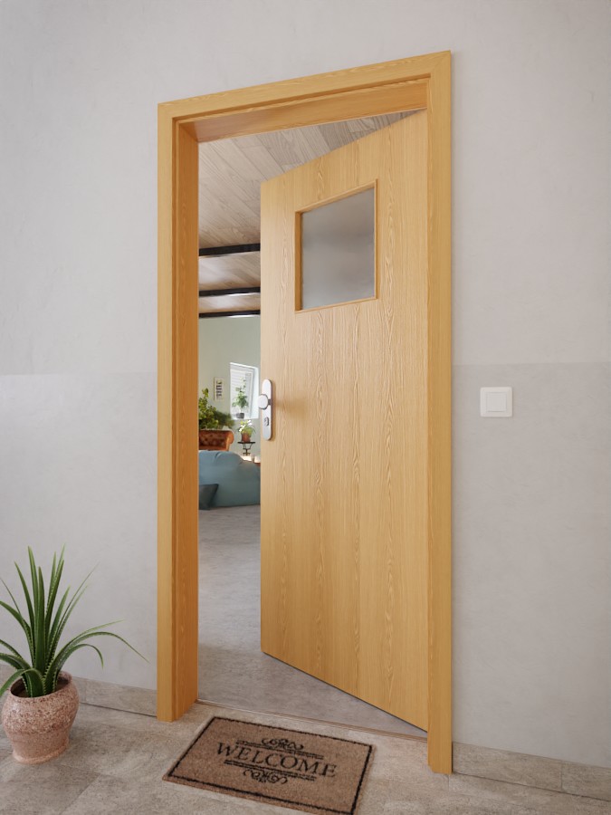 Elegancka drzwi wyjściowe do mieszkania z ochroną akustyczną dzięki obniżającej się uszczelce podłogowej: