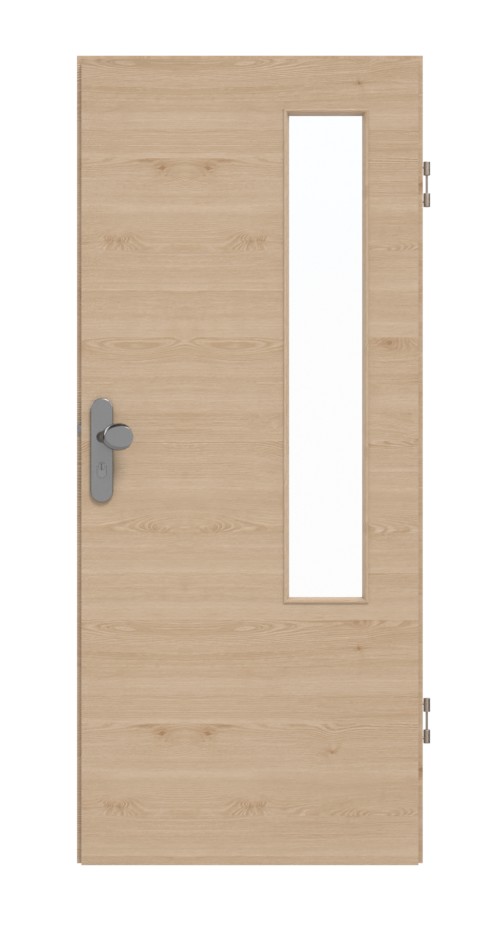 Skrzydło drzwiowe, zawiasy, zamek cylindryczny, szklenie, obniżona uszczelka podłogowa