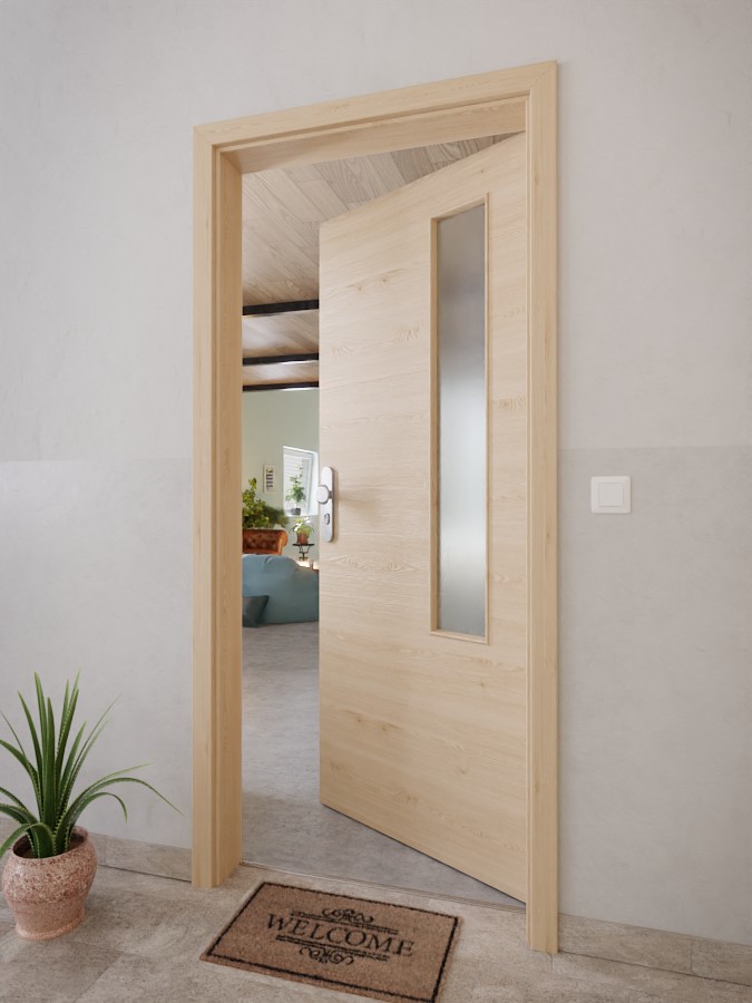 Skrzydło drzwiowe wykonane jest z solidnej płyty wiórowej, która zapewnia wysoką stabilność i bezpieczeństwo.