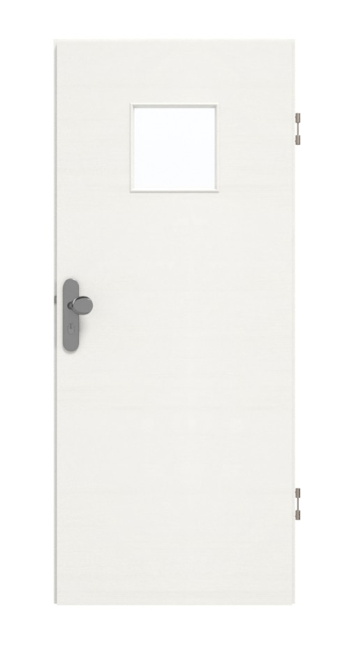 Drzwi posiadają skrzydło drzwiowe wykonane z wytrzymałej płyty wiórowej pełnej, która zapewnia najwyższą stabilność.