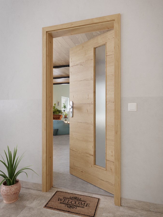 Skrzydło drzwi ozdobione jest smukłym, prostokątnym przeszkleniem. Żywe, poprzeczne usłojenie na dekorze Authentic Asteiche tworzy obraz drewna, który wprowadza przytulność do Twojego domu. Model jest odporny na zarysowania, uderzenia i promieniowanie UV dzięki solidnej i łatwej w pielęgnacji powierzchni CPL.