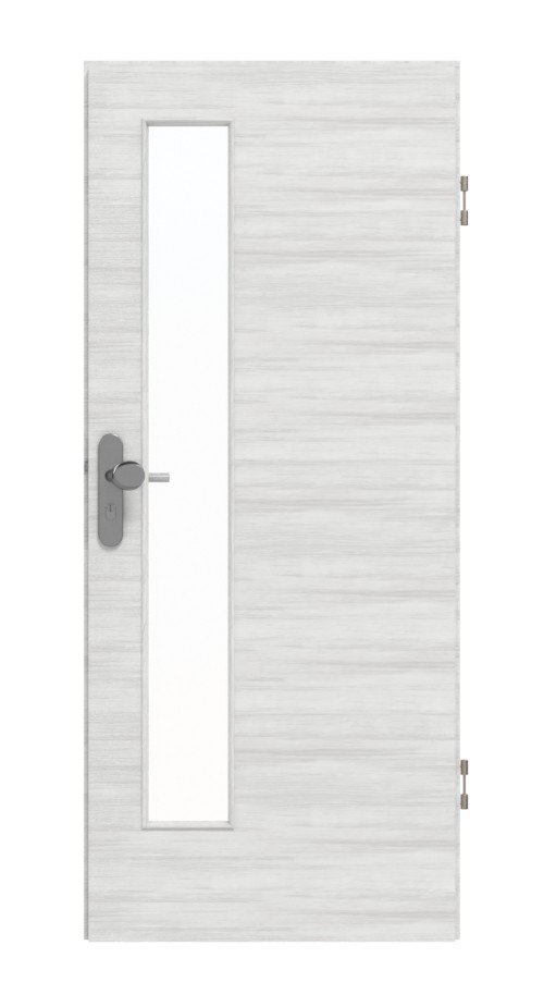 Po stronie zamka znajduje się długie, wąskie przeszklenie. Spokojne usłojenia w kierunku poprzecznym charakteryzują nowoczesny wygląd tego dekoru Authentic Grigio. Model pokryty powłoką HPL charakteryzuje się łatwością pielęgnacji, a także wysoką odpornością na uderzenia, zarysowania, wysoką temperaturę i wilgoć.