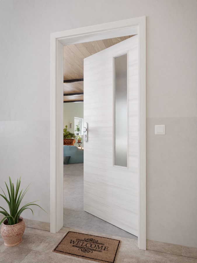 - Skrzydło drzwiowe z wstawką szklaną