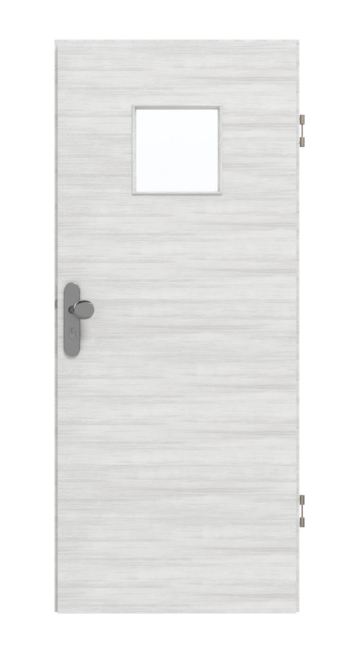 Górną część skrzydła drzwiowego zdobi kwadratowe przeszklenie o szerokości 30 cm. Poziome cieniowania przechodzą przez subtelny odcień szarości dekoru Quer Authentic Grigio. Wytrzymała powłoka HPL spełnia wysokie standardy w zakresie wytrzymałości i trwałości.