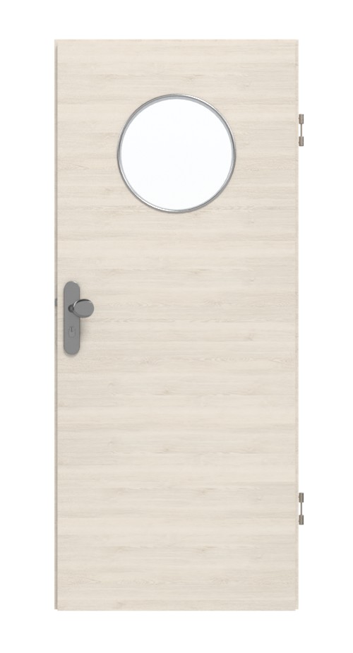 Skrzydło drzwiowe, zawiasy, zamek cylindryczny, szklenie, obniżona uszczelka podłogowa