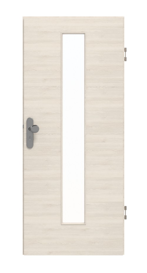 Skrzydło drzwiowe, zawiasy, zamek cylindryczny, szklenie, obniżona uszczelka podłogowa