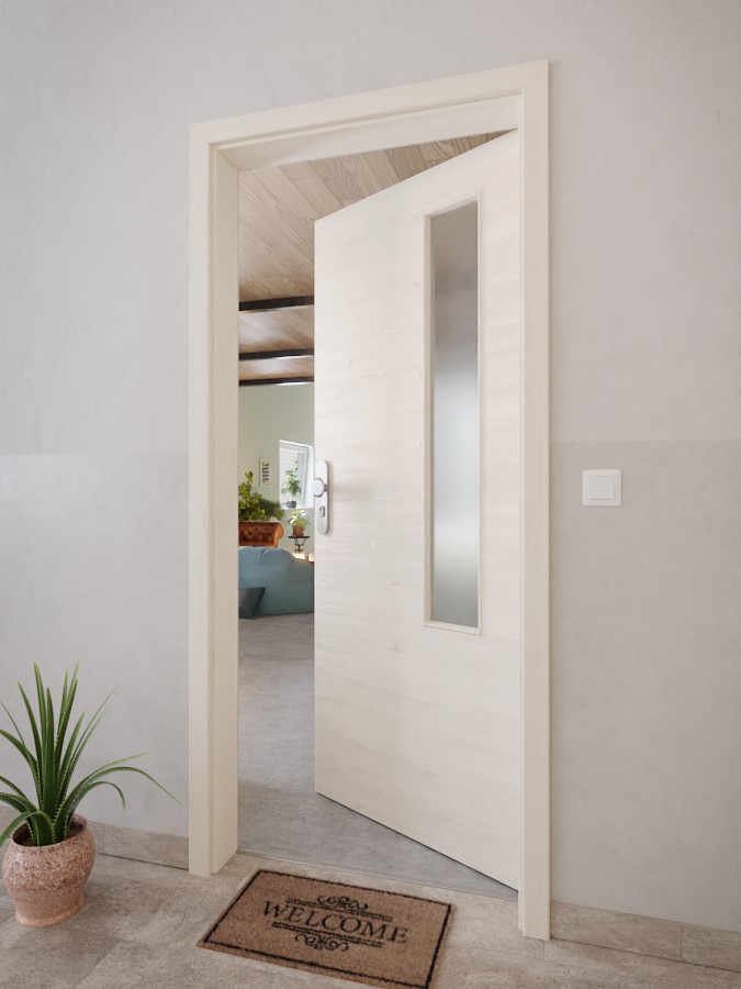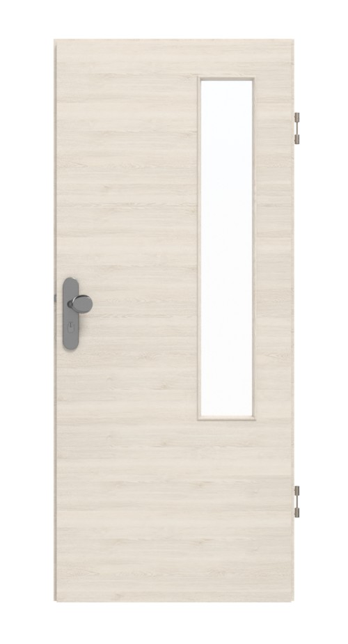 Najważniejszym elementem nowoczesnego designu jest wąskie wycięcie na szybę po stronie zawiasów. W dekorze Authentic Perl harmonijnie łączy się jasnobeżowy odcień podstawowy z delikatnym wzorem słojów drewna w układzie poprzecznym. Model pokryty powłoką HPL jest odporny na zarysowania, uderzenia i czynniki środowiskowe.
