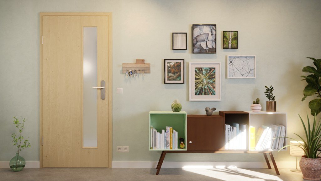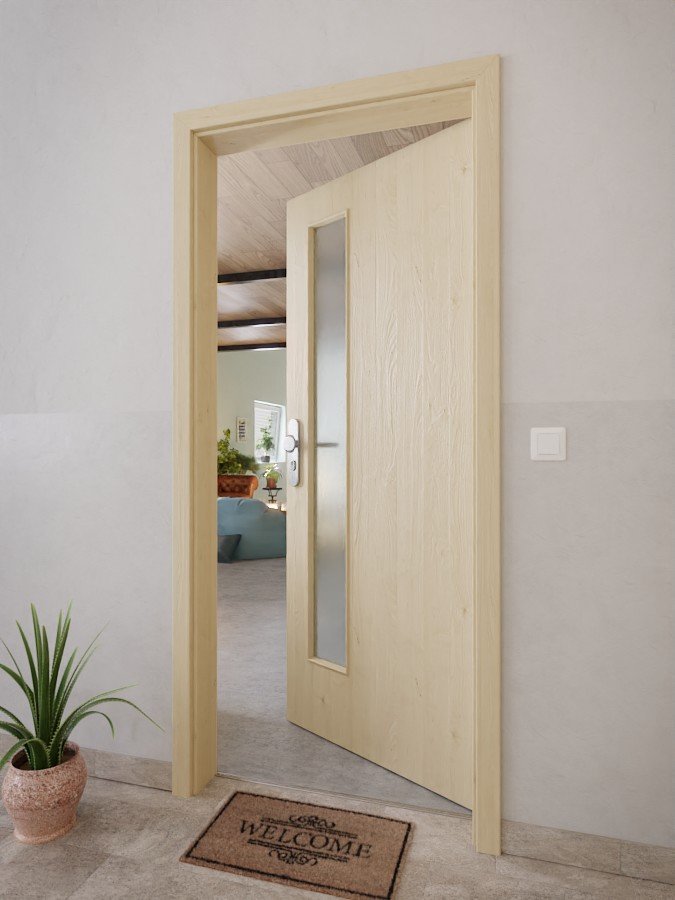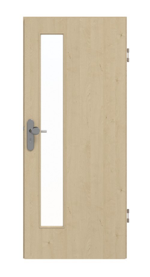 Wąskie wycięcie na szybę zdobi skrzydło drzwiowe po stronie zamka. Wzór Natura Ahorn prezentuje się jasno i przytulnie. Wyróżnia się delikatnym usłojeniem z niewielkimi śladami sęków. Powierzchnie CPL zachowują swój piękny design nawet po długim użytkowaniu i pod wpływem promieniowania UV.