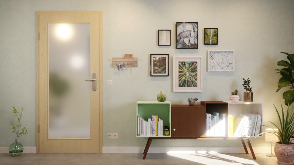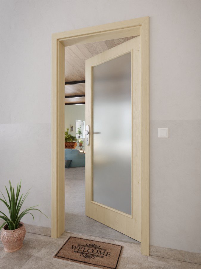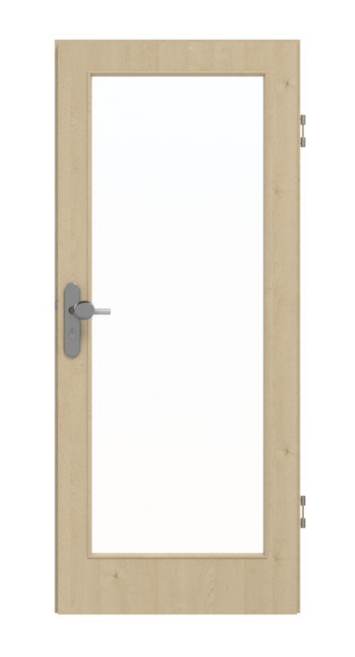 Design charakteryzuje się otwartą atmosferą dzięki dużemu, prostokątnemu wycięciu na szybę w środkowej części skrzydła drzwiowego. Jasny beżowy i drobne zaznaczenia sęków nadają ton dekorowi Natura Ahorn. Powierzchnie CPL zachowują swój piękny design nawet po długim użytkowaniu i pod wpływem promieniowania UV.