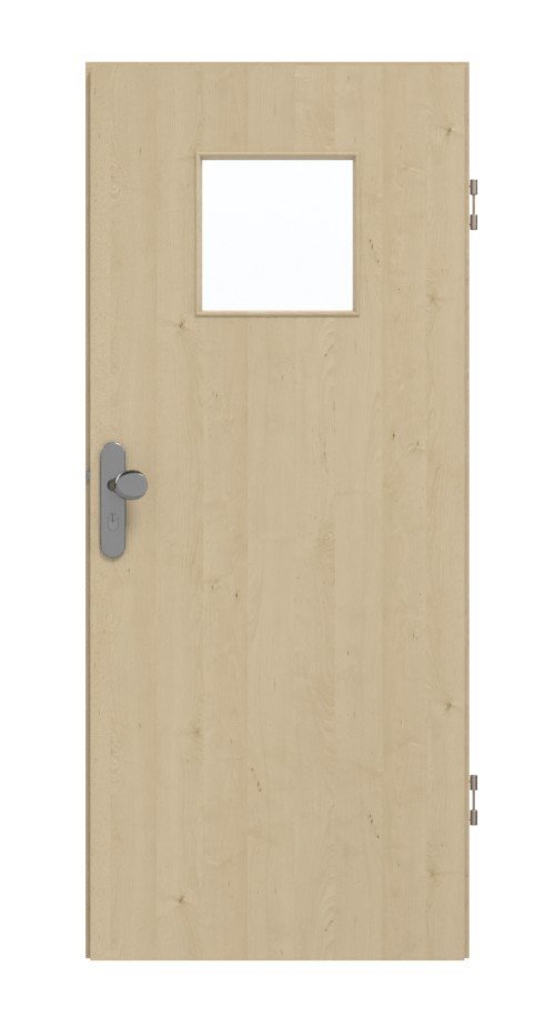 Skrzydło drzwiowe, zawiasy, zamek cylindryczny, szklenie, obniżona uszczelka podłogowa