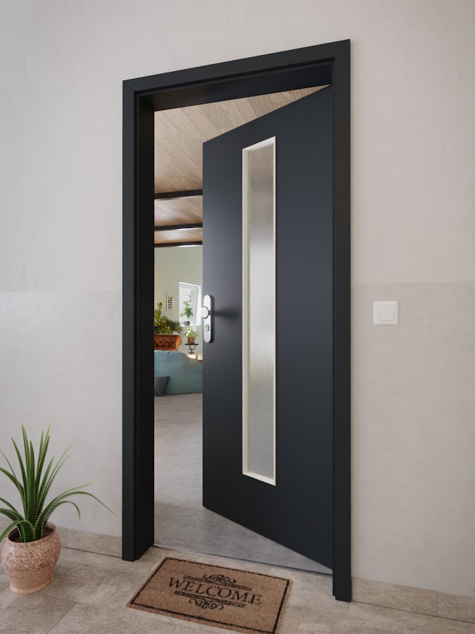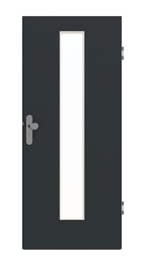 W centrum skrzydła drzwiowego znajduje się wycięcie na okno , które przyciąga wzrok. Ciemna czerń wulkaniczna oraz delikatna, piaskowana struktura nadają temu nowoczesnemu dekorowi charakterystyczny wygląd. Ten łatwy w pielęgnacji model jest równie dobrze zabezpieczony przed zarysowaniami i uderzeniami, jak przed wysoką temperaturą i wilgocią.